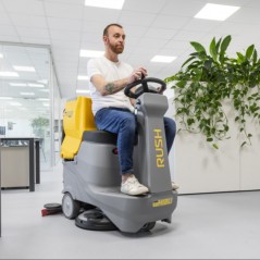 L’autolaveuse autoportée RUSH 65 RD 55 Lithium est la solution idéale pour le nettoyage des surfaces de moyenne dimension, alliant efficacité, maniabilité et confort d’utilisation.
